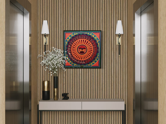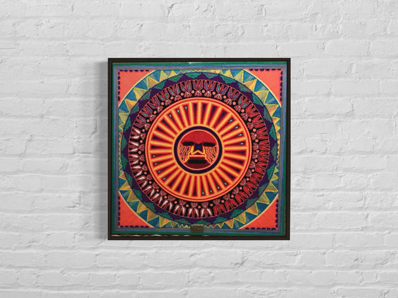 Art Huichol.- La fabrication des tableaux de fil Huichol sont de véritables peintures de fils multicolores, le fil est collé avec de la cire de Campeche (cire d'abeille), où les Huichols expriment les visions qu'ils ont lors de leurs rituels, leurs histoires et leur religion.
